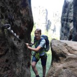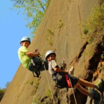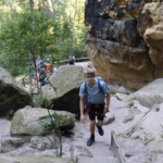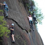 Nach der kurzen Einführungswanderung folgte am Montag der erste Klettertag. Nach einer Einweisung in Knoten- und Kletterkunde durch unseren Guide, Matthias, konnten sich alle erst an der 7m hohen Übungswand ausprobieren, bevor es in den viel höheren Klettersteig gehen sollte. Nach vielen mutigen und erfolgreichen Trainingsrunden, stärkten sich alle nochmal beim Mittag. Anschließend war es soweit und wir begannen den Aufstieg zum 40 m hohen Klettersteig in der einzigartigen Felsenwelt des Elbsandsteingebirges. Mit großem Engagement entdeckten die Jugendlichen weitere eigene Ressourcen, stellten sich der Herausforderung, überwanden Ängste und stärkten das Teamgefühl. Alle hatten dabei viel Spaß und Freude. Anschließend wagten sich noch fünf Todesmutige an das eigenständige Abseilen von einem 30m hohen Naturfelsen. Alle Fünf meisterten diese Challenge mit Bravour. Am Abend ließen alle die Seele beim Lagerfeuer baumeln und blickten stolz über ihre Leistung zurück auf diesen ereignisreichen Tag.